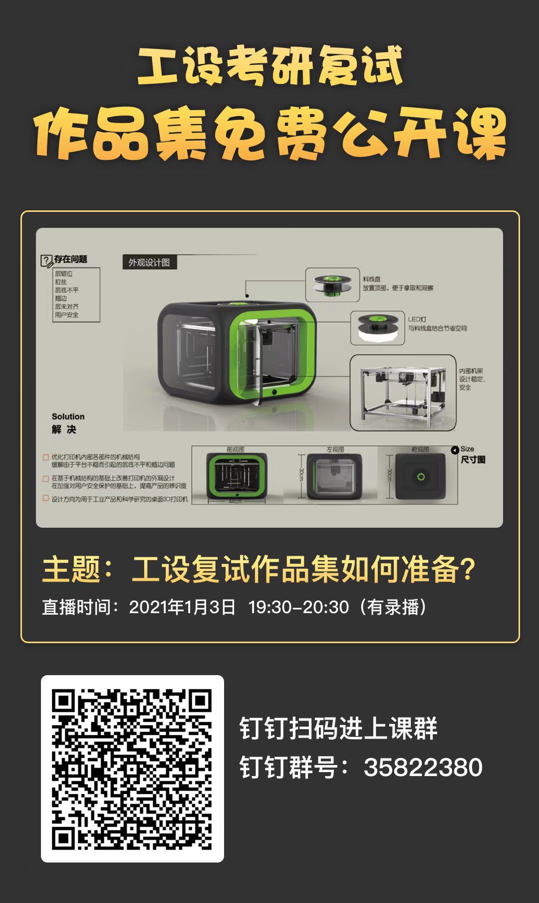 【釘釘公開(kāi)課】工業(yè)設(shè)計(jì)考研復(fù)試作品集如何準(zhǔn)備?—1月3日19:30-20:30直播 發(fā)布時(shí)間:2020-12-31 工業(yè)設(shè)計(jì)考研復(fù)試作品集如何準(zhǔn)備? 上一篇:2021年工業(yè)設(shè)計(jì)考研快題手繪真題匯總(回憶版) 下一篇:【公開(kāi)課】環(huán)藝考研復(fù)試作品集如何準(zhǔn)備?—1月8日釘釘直播