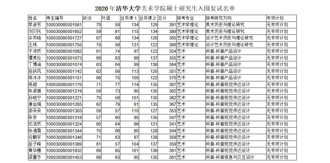 清華大學(xué)美術(shù)學(xué)院2020年考研復(fù)試名單公布 發(fā)布時間:2020-04-29 清華大學(xué)美術(shù)學(xué)院2020年考研復(fù)試名單公布 上一篇:清華大學(xué)美術(shù)學(xué)院2020年考研復(fù)試錄取實施細則 下一篇:清華大學(xué)美術(shù)學(xué)院2019年考研錄取名單公示