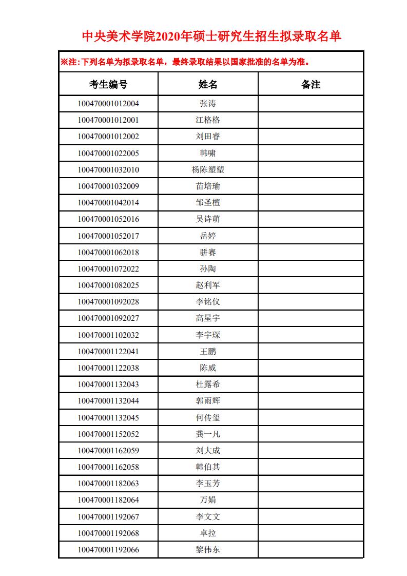 中央美術(shù)學(xué)院2020年考研錄取名單公示 發(fā)布時(shí)間:2020-05-11 中央美術(shù)學(xué)院2020年考研錄取名單公示 上一篇:中央美術(shù)學(xué)院2020年博士研究生專業(yè)目錄 下一篇:中央美術(shù)學(xué)院2020年考研復(fù)試分?jǐn)?shù)線公布