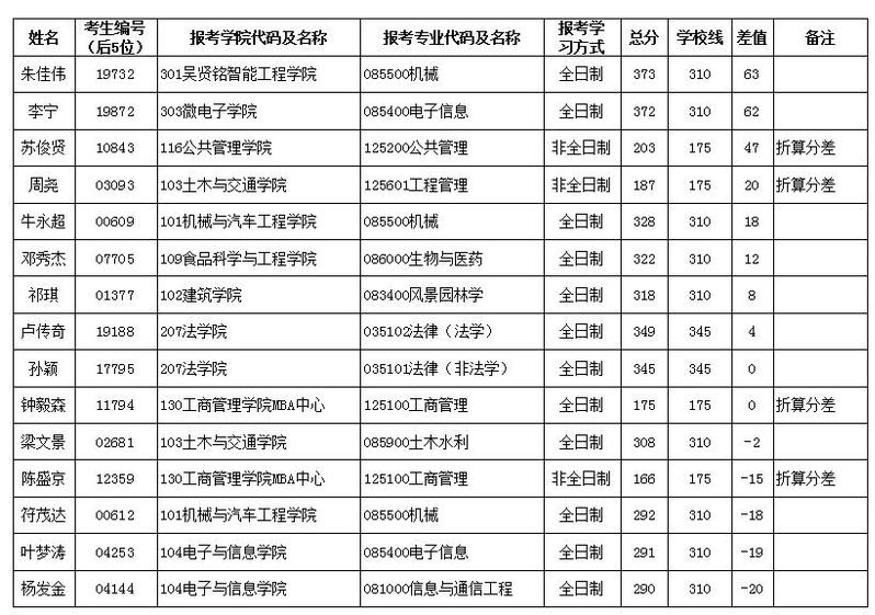 2. 按照考生初試總分與我校普通計劃對應學科門類基本分數(shù)線的差值從高到低排序決定是否獲得復試資格(“差值”一樣的情況下,優(yōu)先理工科專業(yè)),直至達到招生計劃數(shù)。