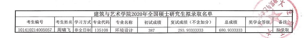 大連理工大學(xué)建筑與藝術(shù)學(xué)院2020年考研擬錄取名單公示 發(fā)布時(shí)間:2020-05-17 大連理工大學(xué)建筑與藝術(shù)學(xué)院2020年考研擬錄取名單公示 上一篇:大連理工大學(xué)建筑與藝術(shù)學(xué)院2020年考研復(fù)試成績公示 下一篇:大連理工大學(xué)建筑與藝術(shù)學(xué)院2021年考研招生目錄及參考書目