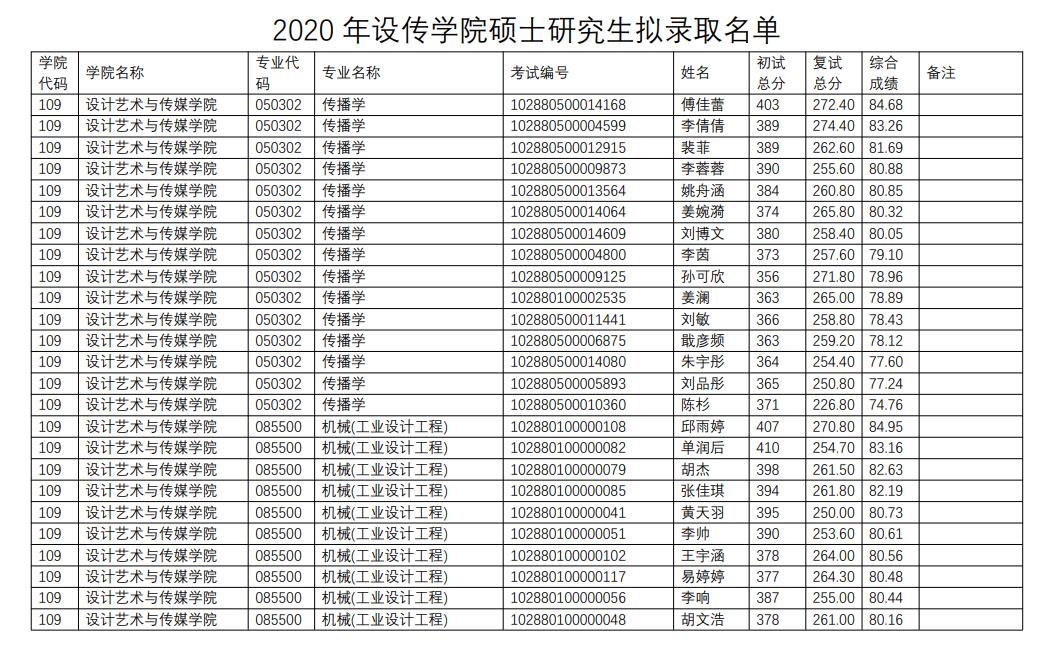南京理工大學設(shè)計藝術(shù)與傳播學院2020年考研錄取名單公示 發(fā)布時間:2020-05-25 南京理工大學設(shè)計藝術(shù)與傳播學院2020年考研錄取名單公示 上一篇:南京理工大學設(shè)計藝術(shù)與傳媒學院2020年考研復(fù)試名單公示 下一篇:南京理工大學設(shè)計藝術(shù)與傳媒學院2021年考研招生目錄及參考書目