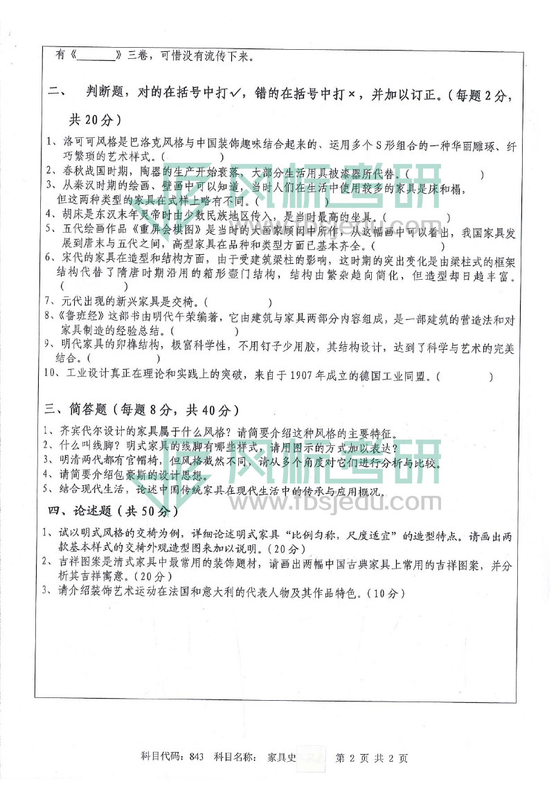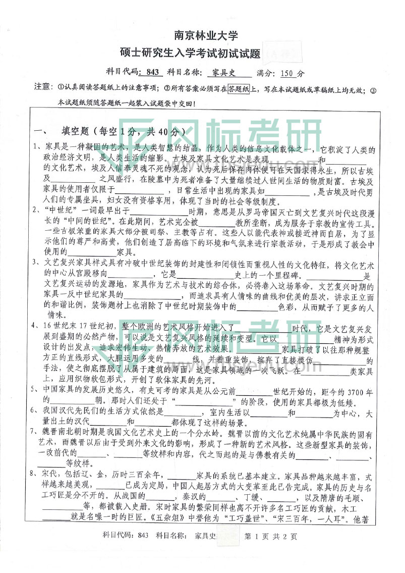 南京林業(yè)大學(xué)家具與工業(yè)設(shè)計學(xué)院2017年考研真題:843家具史