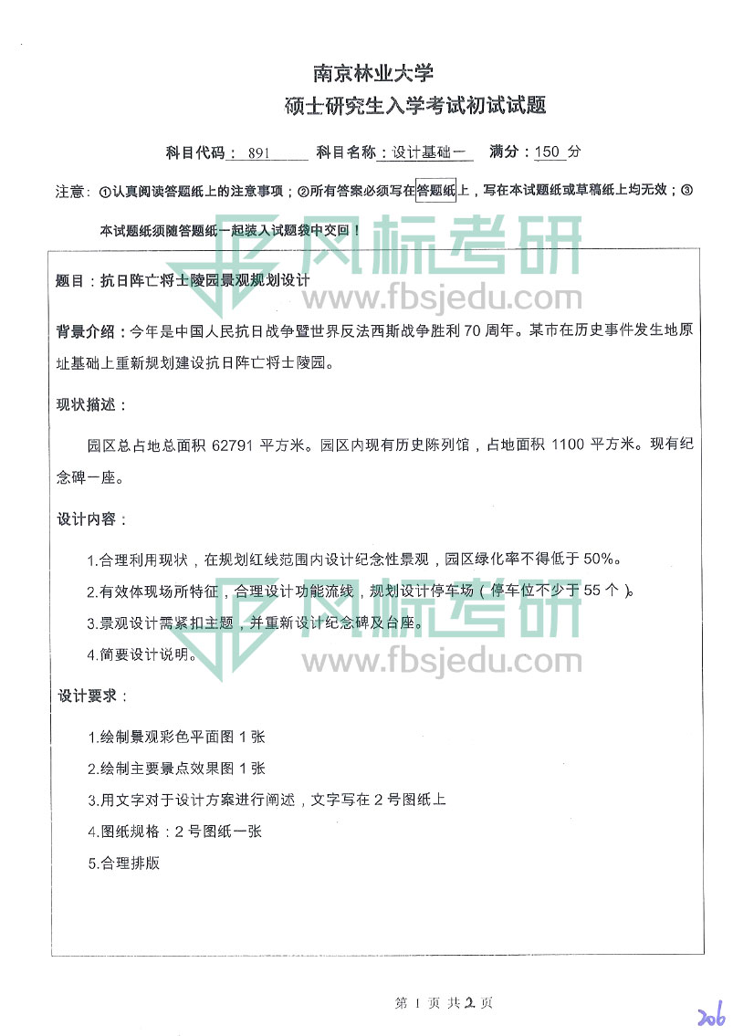 南京林業(yè)大學(xué)環(huán)境藝術(shù)設(shè)計考研2017年真題:891設(shè)計基礎(chǔ)一