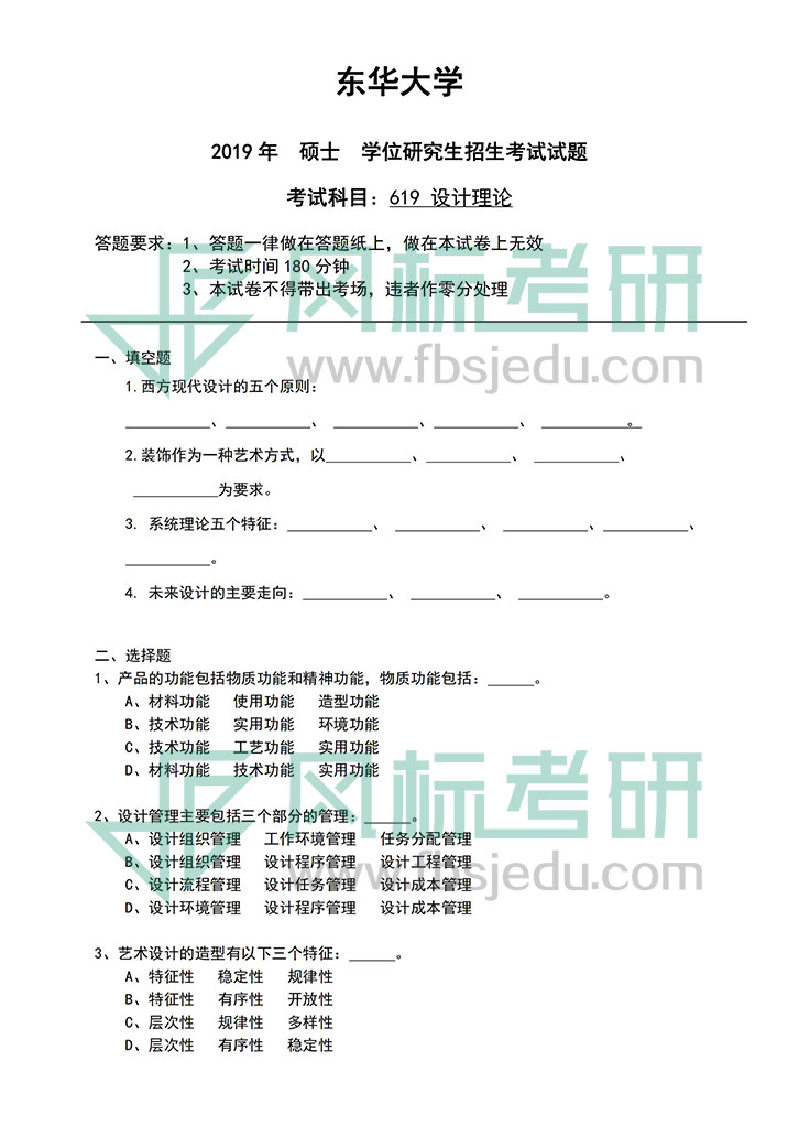 東華大學(xué)設(shè)計(jì)學(xué)、藝術(shù)設(shè)計(jì)考研2019年真題:619設(shè)計(jì)理論 發(fā)布時(shí)間:2019-09-07 上一篇:東華大學(xué)設(shè)計(jì)學(xué)、藝術(shù)設(shè)計(jì)考研2018年真題:619設(shè)計(jì)理論 下一篇:東華大學(xué)2021年考研初試成績(jī)查詢時(shí)間2月26日公布