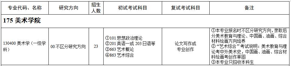 浙江師范大學(xué)美術(shù)學(xué)院2021年考研招生目錄及參考書目 發(fā)布時間:2020-09-16 663藝術(shù)概論:藝術(shù)學(xué)概論,彭吉象,北京大學(xué)出版社,2006年版;藝術(shù)概論,王宏建,文化藝術(shù)出版社,2000年版863藝術(shù)綜合:中國美術(shù)簡史/外國美術(shù)簡史,中央美院中、外美史教研室編,中國青年出版社 上一篇:浙江師范大學(xué)美術(shù)學(xué)院簡介 下一篇:浙江師范大學(xué)美術(shù)學(xué)院2021年考研考試大綱:863藝術(shù)綜合