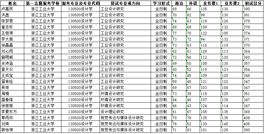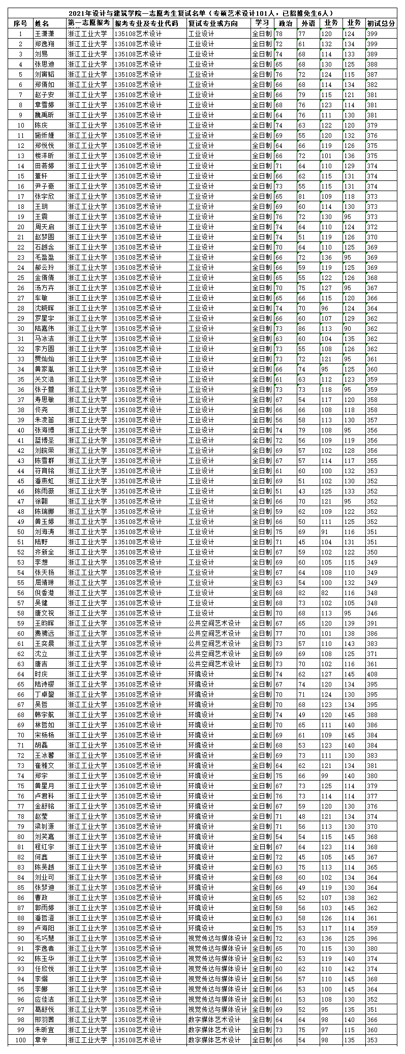 浙江工業(yè)大學(xué)2021年考研復(fù)試名單公布(設(shè)計(jì)學(xué)、藝術(shù)設(shè)計(jì))