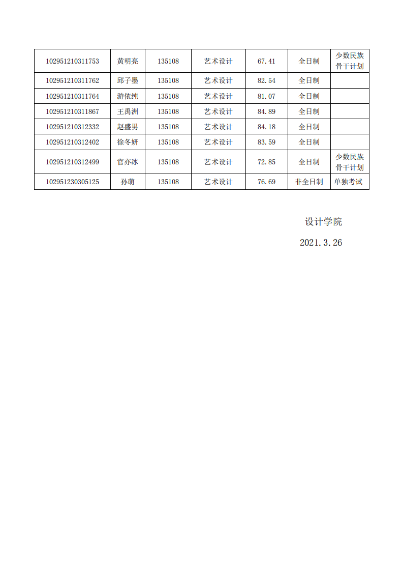 江南大學(xué)設(shè)計(jì)學(xué)院2021年考研擬錄取名單公布 發(fā)布時(shí)間:2021-03-26 江南大學(xué)設(shè)計(jì)學(xué)院2021年考研擬錄取名單公布 上一篇:江南大學(xué)設(shè)計(jì)學(xué)院2021年考研復(fù)試名單公布 下一篇:江南大學(xué)設(shè)計(jì)學(xué)院碩士生、博士生導(dǎo)師簡(jiǎn)介