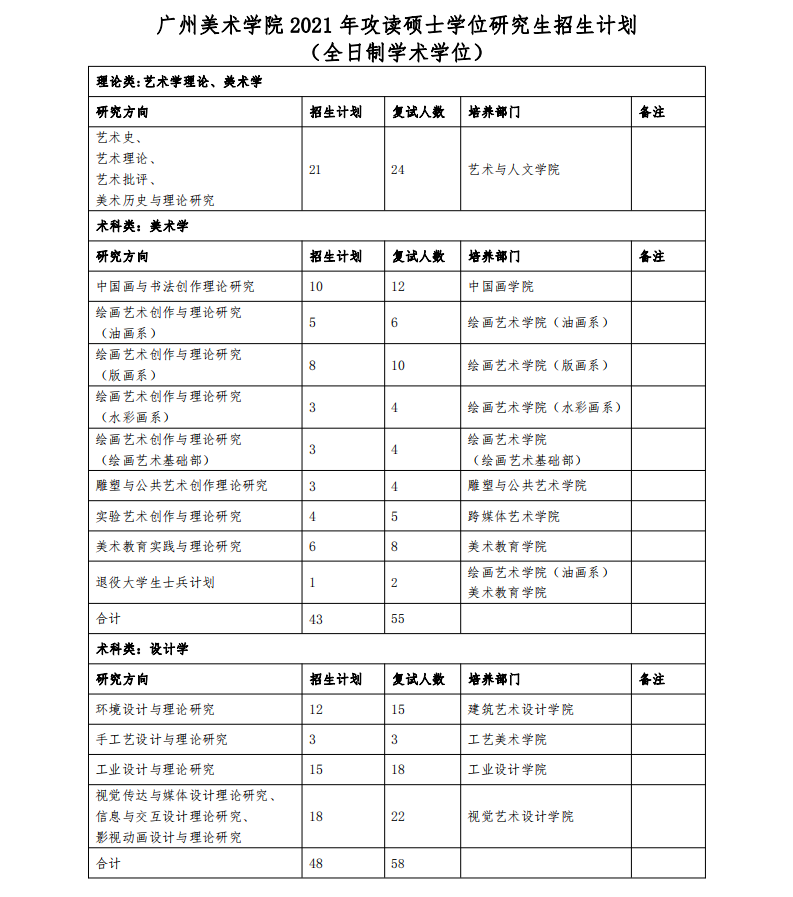廣州美術學院2021年考研招生人數(shù)計劃 發(fā)布時間:2021-04-02 廣州美術學院2021年考研招生人數(shù)計劃 上一篇:廣州美術學院建筑藝術設計學院2021年考研復試分數(shù)線及復試名單公布 下一篇:廣州美術學院視覺藝術設計學院2022年考研招生目錄