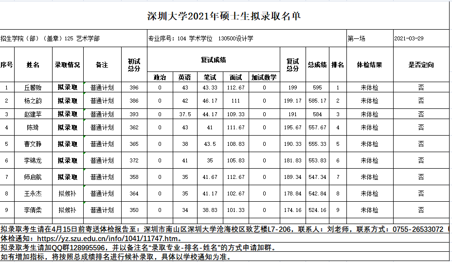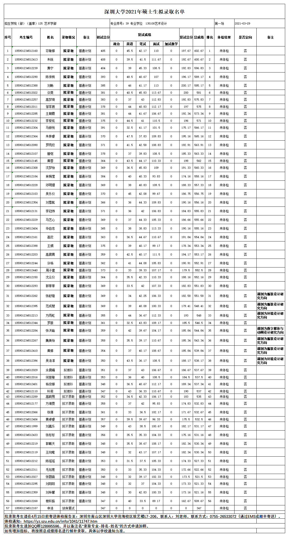 深圳大學藝術學部2021年考研錄取名單公示(設計學、藝術設計) 發(fā)布時間:2021-03-29 深圳大學藝術學部2021年考研錄取名單公示(設計學、藝術設計) 上一篇:深圳大學藝術學部2021年考研復試名單公布 下一篇:深圳大學藝術學部2022年考研招生目錄