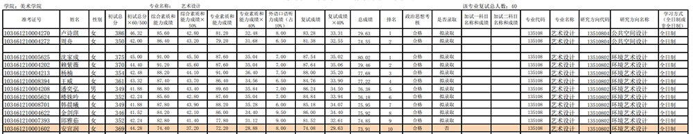 杭州師范大學(xué)美術(shù)學(xué)院2021年考研錄取名單公布(設(shè)計學(xué)、藝術(shù)設(shè)計) 發(fā)布時間:2021-04-01 杭州師范大學(xué)美術(shù)學(xué)院2021年考研錄取名單公布(設(shè)計學(xué)、藝術(shù)設(shè)計) 上一篇:杭州師范大學(xué)美術(shù)學(xué)院2021年考研復(fù)試名單公布 下一篇:杭州師范大學(xué)美術(shù)學(xué)院2022年考研招生目錄