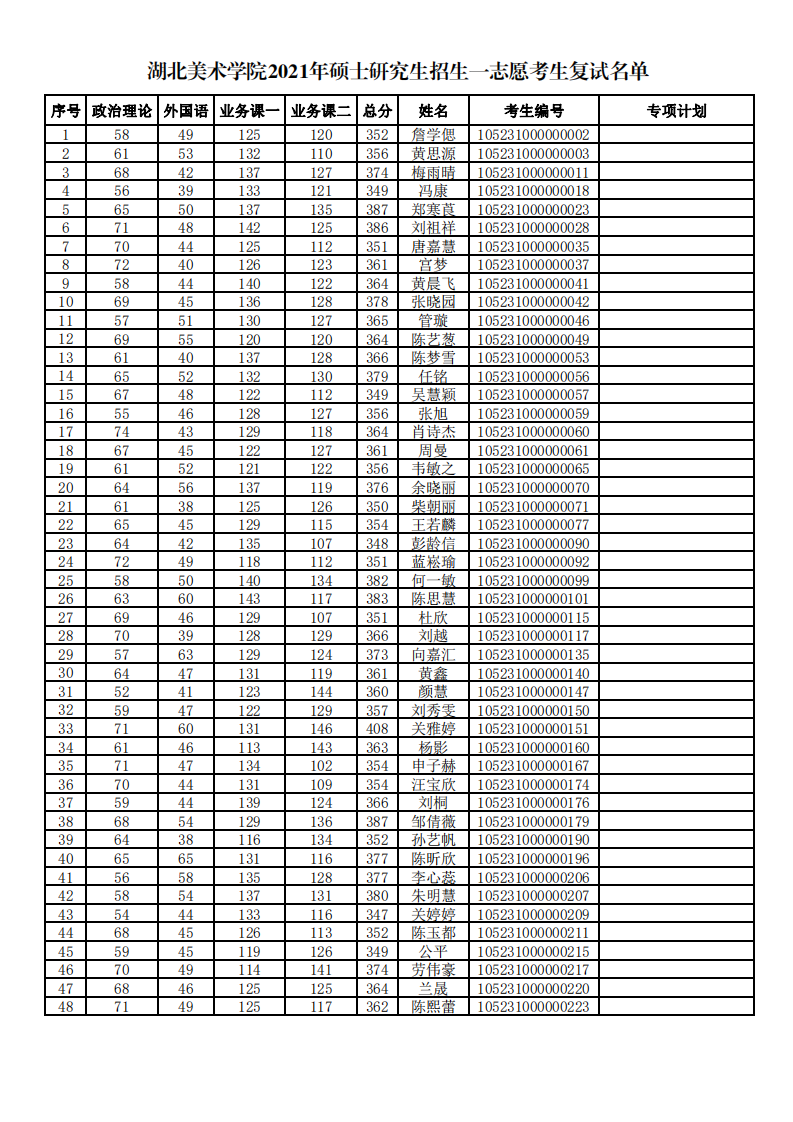 湖北美術(shù)學院2021年考研復試名單公布 發(fā)布時間:2021-03-21 湖北美術(shù)學院2021年考研復試名單公布 上一篇:湖北美術(shù)學院2021年考研復試分數(shù)線公布 下一篇:湖北美術(shù)學院視覺藝術(shù)設(shè)計學院2022年考研招生目錄