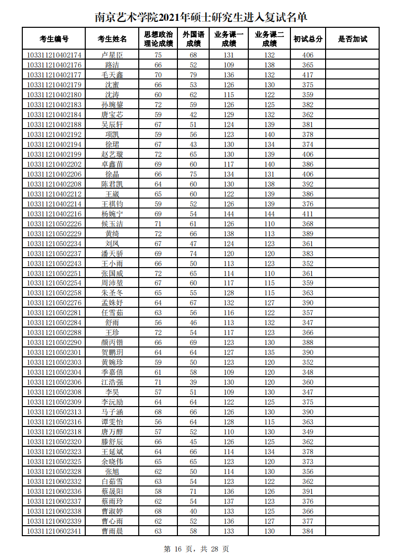 南京藝術學院2021年考研復試名單公布 發(fā)布時間:2021-03-25 南京藝術學院2021年考研復試名單公布 上一篇:南京藝術學院設計學院2021年考研復試安排 下一篇:南京藝術學院設計學院2022年考研招生目錄