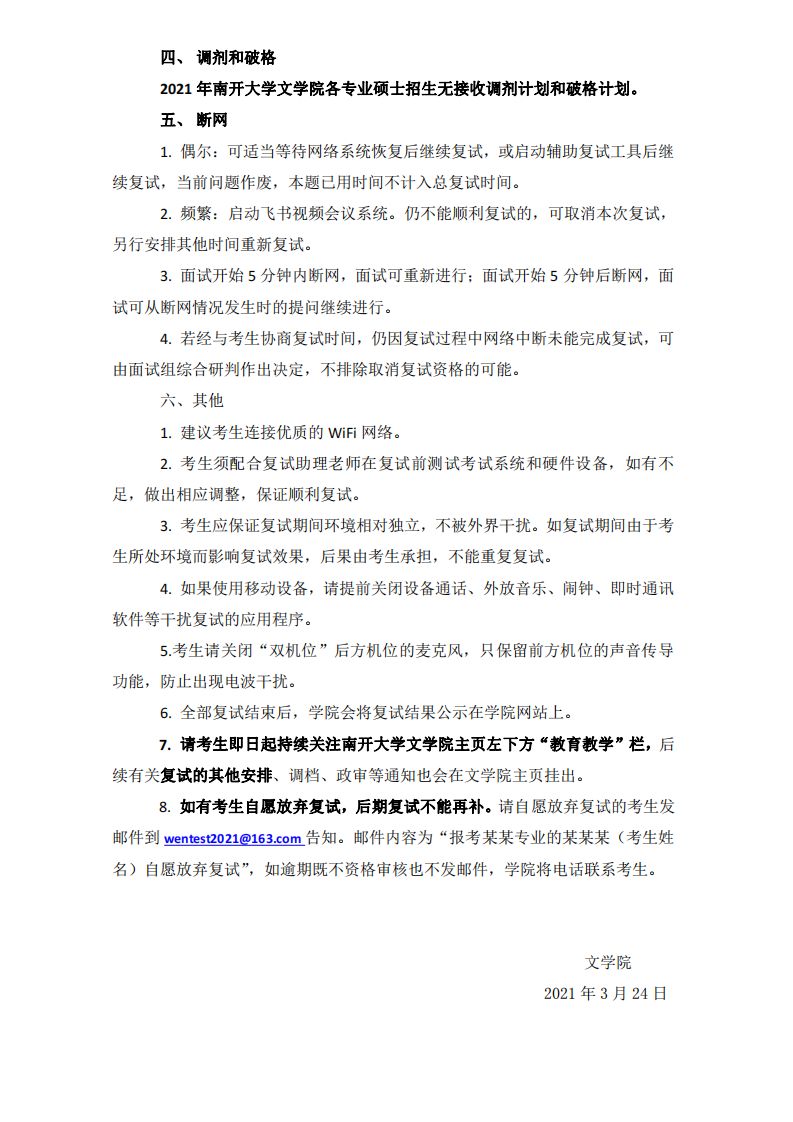 南開大學文學院2021年考研復試安排 發(fā)布時間:2021-03-24 南開大學文學院2021年考研復試安排 上一篇:南開大學文學院2021年考研招生人數(shù)計劃(設計學、藝術設計) 下一篇:南開大學文學院2021年考研復試結果公示(設計學、藝術設計)