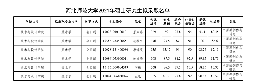 河北師范大學(xué)2021年考研調(diào)劑錄取名單(美術(shù)與設(shè)計(jì)學(xué)院) 發(fā)布時間:2021-03-31 河北師范大學(xué)2021年考研調(diào)劑錄取名單(美術(shù)與設(shè)計(jì)學(xué)院) 上一篇:河北師范大學(xué)美術(shù)與設(shè)計(jì)學(xué)院2021年考研錄取名單公示 下一篇:河北師范大學(xué)美術(shù)與設(shè)計(jì)學(xué)院2022年考研招生目錄及參考書目