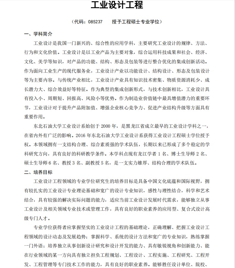 工業(yè)設(shè)計(jì)工程碩士簡(jiǎn)介 發(fā)布時(shí)間:2019-09-01 上一篇:東北石油大學(xué)工業(yè)設(shè)計(jì)系簡(jiǎn)介 下一篇:東北石油大學(xué)2021年考研招生目錄(機(jī)械-工業(yè)設(shè)計(jì)工程)