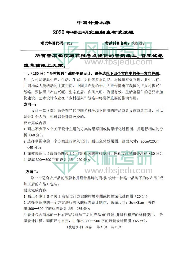 中國計(jì)量大學(xué)藝術(shù)與傳媒學(xué)院2020年考研真題:818快題設(shè)計(jì)