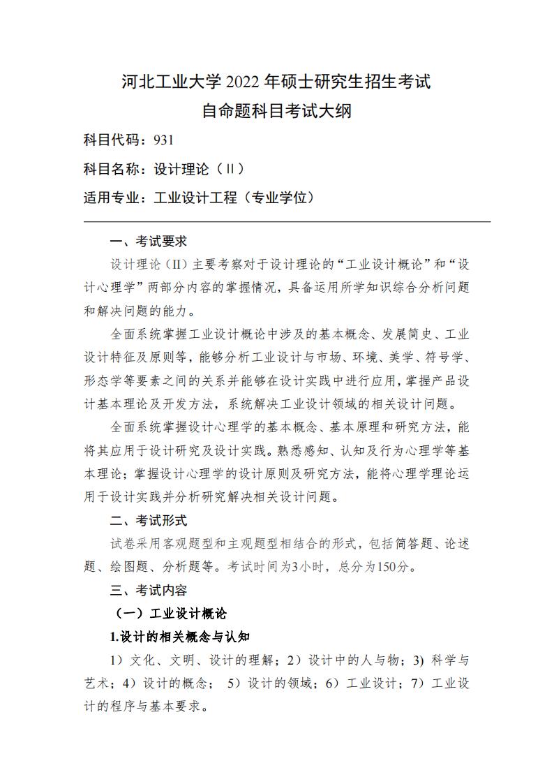 河北工業(yè)大學2022年考研考試大綱:931設(shè)計理論 發(fā)布時間:2021-09-17 上一篇:河北工業(yè)大學2022年考研考試大綱:337工業(yè)設(shè)計工程 下一篇:河北工業(yè)大學2022年考研考試大綱:503專業(yè)設(shè)計(3小時)