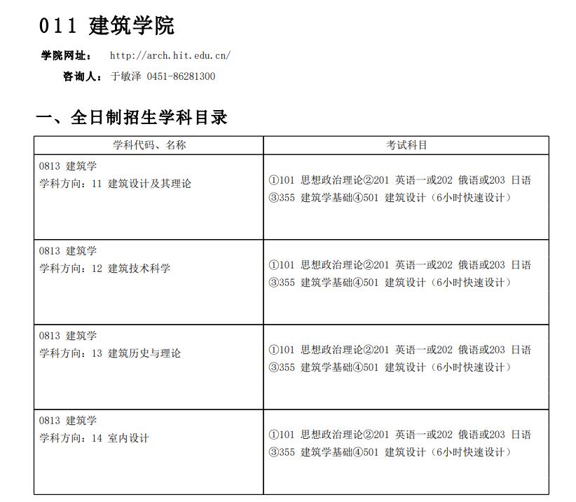 哈爾濱工業(yè)大學(xué)建筑學(xué)院2022年考研招生目錄及參考書(shū)目