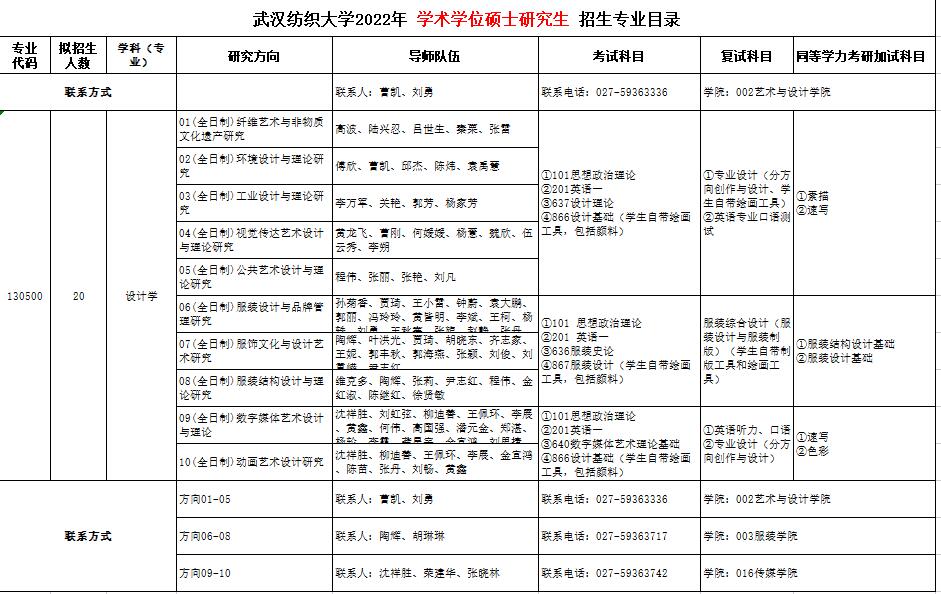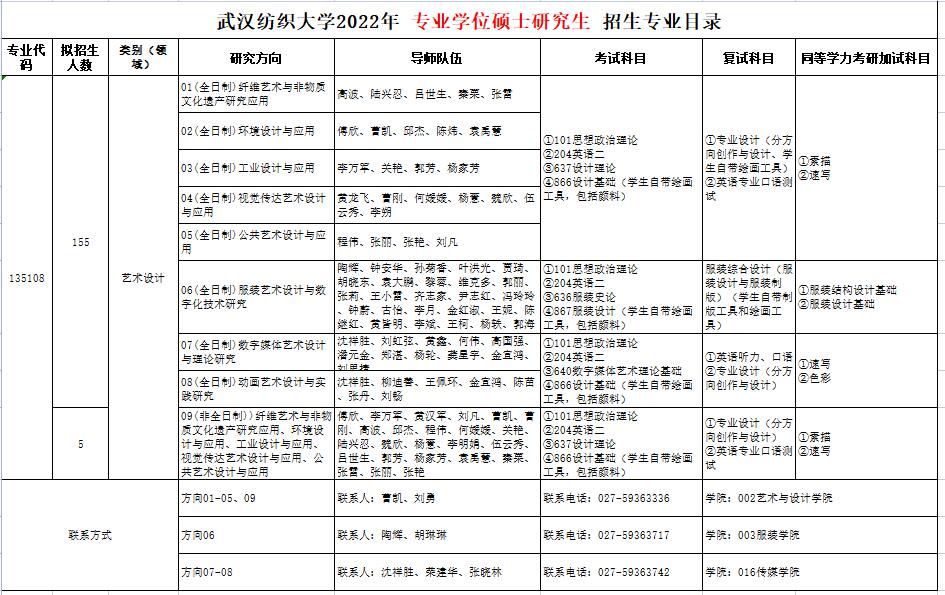 武漢紡織大學藝術與設計學院2022年考研招生目錄及參考書目