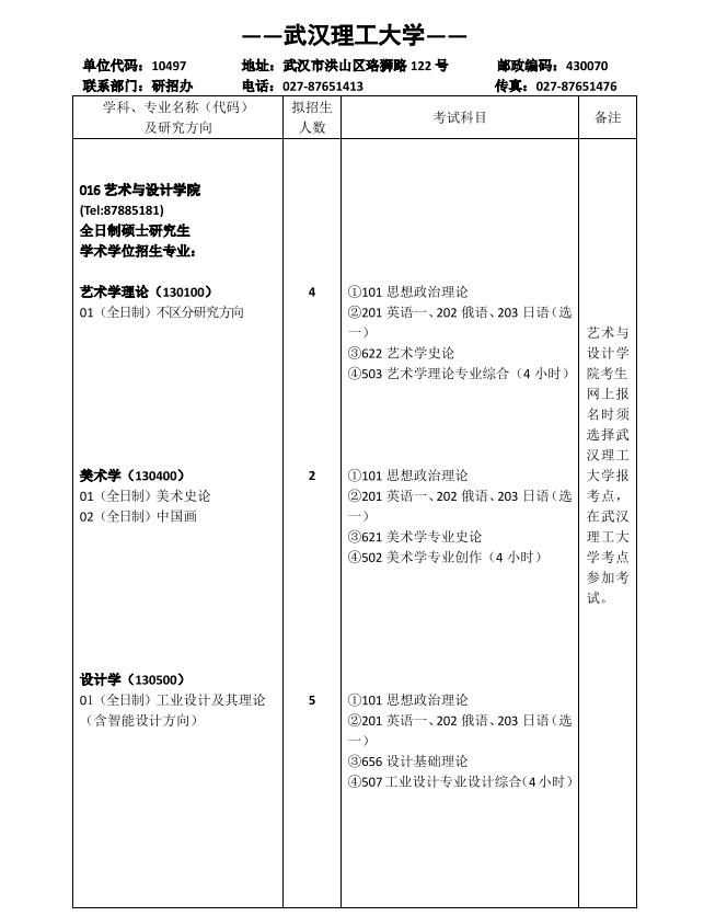 武漢理工大學藝術設計學院2022年考研招生目錄 發(fā)布時間:2021-09-16 上一篇:武漢理工大學2021年設計學-視覺傳達設計考研錄取名單公示 下一篇:武漢理工大學藝術設計學院2022年考研考試大綱:337工業(yè)設計工程