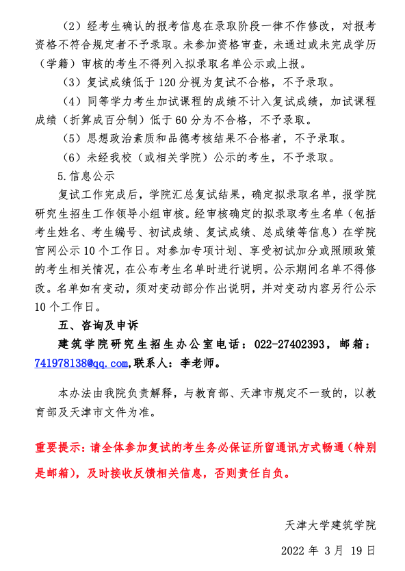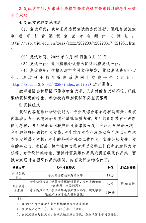 天津大學(xué)建筑學(xué)院2022年考研復(fù)試安排 發(fā)布時(shí)間:2022-03-20 天津大學(xué)建筑學(xué)院2022年考研復(fù)試安排 上一篇:天津大學(xué)2022年考研復(fù)試分?jǐn)?shù)線發(fā)布 下一篇:天津大學(xué)建筑學(xué)院2022年考研復(fù)試名單