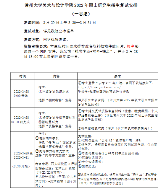 常州大學美術(shù)與設(shè)計學院2022年考研復試安排(一志愿) 發(fā)布時間:2022-03-26 常州大學美術(shù)與設(shè)計學院2022年考研復試安排(一志愿) 上一篇:常州大學2022年考研復試考生須知 下一篇:常州大學美術(shù)與設(shè)計學院2022年考研復試名單
