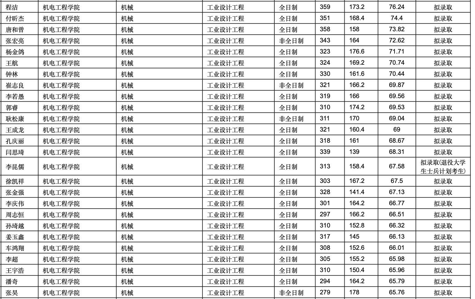 東北林業(yè)大學(xué)機(jī)電工程學(xué)院2022年工業(yè)設(shè)計(jì)工程考研錄取名單