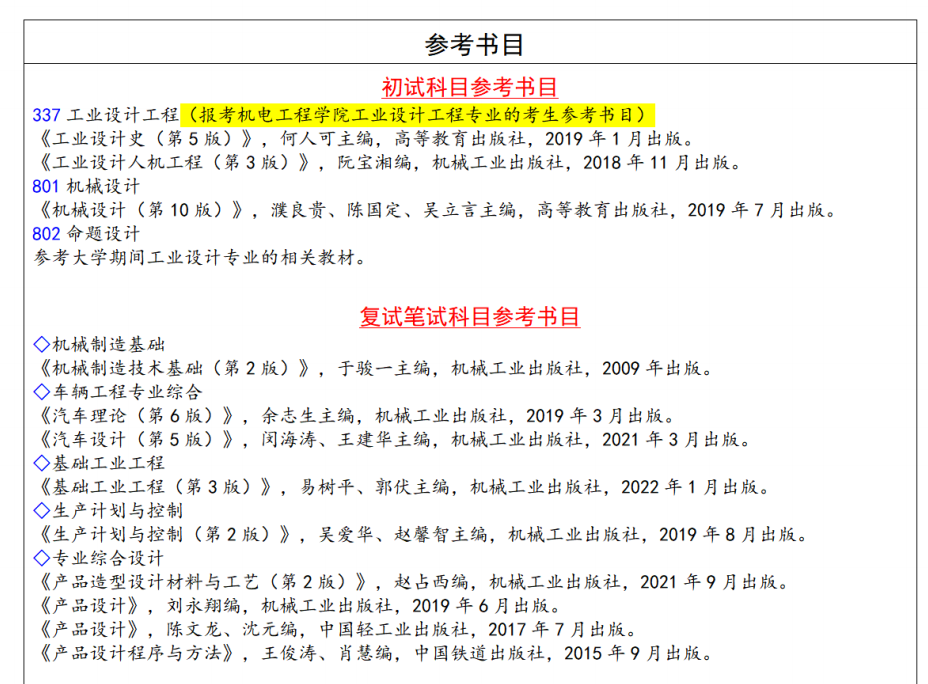 長春工業(yè)大學(xué)機(jī)電工程學(xué)院2023年工業(yè)設(shè)計(jì)工程考研招生目錄及參考書目