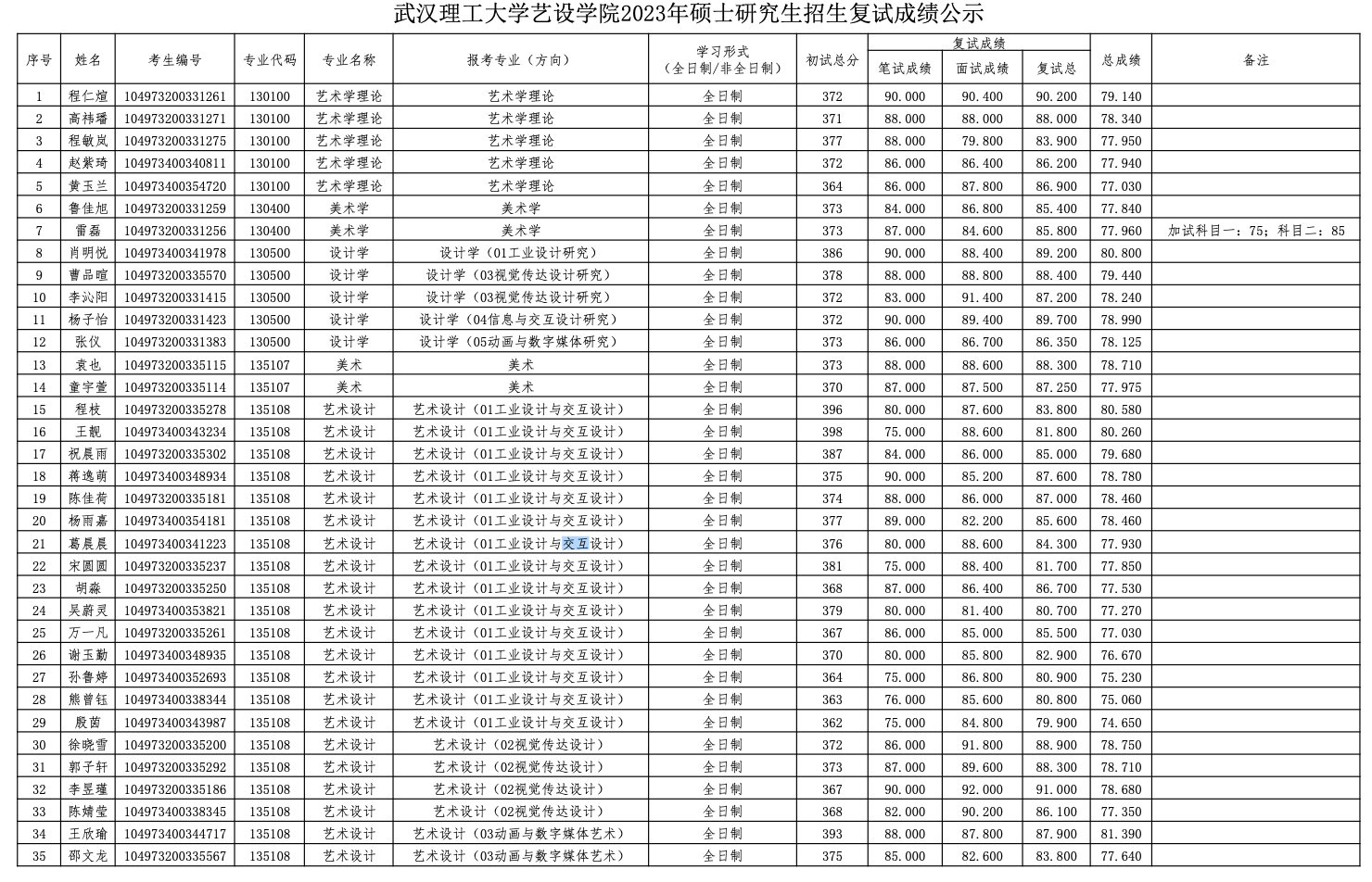 武漢理工大學藝術(shù)與設(shè)計學院2023年考研復試成績結(jié)果公示 發(fā)布時間:2023-03-28 武漢理工大學藝術(shù)與設(shè)計學院2023年考研復試成績結(jié)果公示 上一篇:武漢理工大學藝術(shù)設(shè)計學院2023年考研復試公告 下一篇:武漢理工大學藝術(shù)與設(shè)計學院2023年考研調(diào)劑復試名單