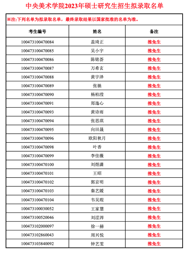 中央美術(shù)學(xué)院2023年考研錄取名單 發(fā)布時間:2023-04-03 中央美術(shù)學(xué)院2023年考研錄取名單 上一篇:中央美術(shù)學(xué)院設(shè)計學(xué)院2023年考研復(fù)試分?jǐn)?shù)線 下一篇:中央美術(shù)學(xué)院設(shè)計學(xué)院2024年考研招生目錄