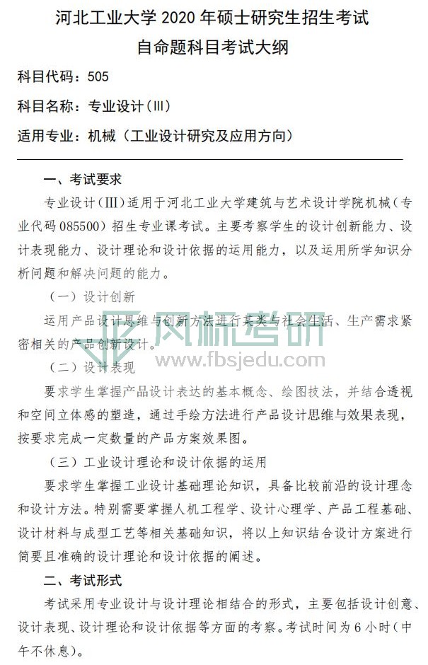 河北工業(yè)大學建筑與藝術(shù)設(shè)計學院2020年考研考試大綱-505專業(yè)設(shè)計(3)