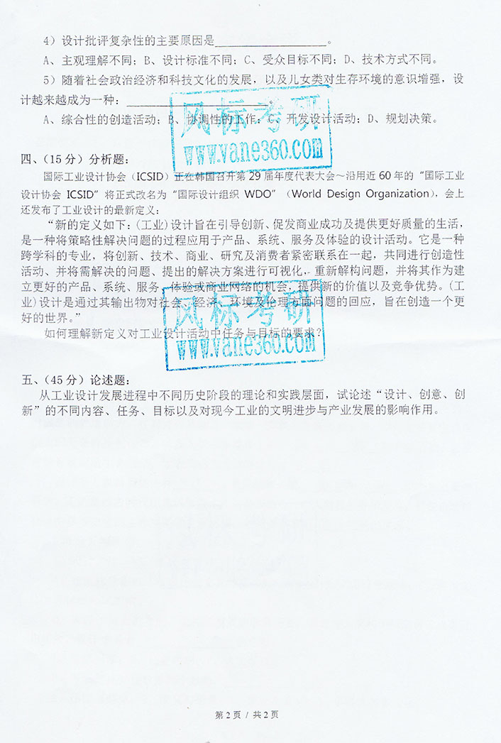東華大學(xué)工業(yè)設(shè)計(jì)工程考研2016年考研真題-337工業(yè)設(shè)計(jì)工程