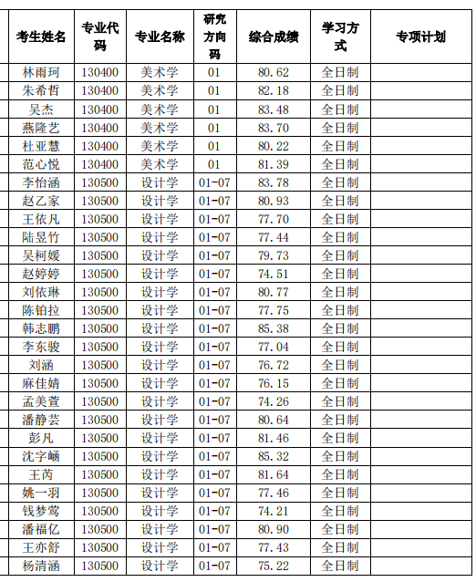 江南大學(xué)設(shè)計學(xué)院2023年考研錄取名單 發(fā)布時間:2023-05-12 江南大學(xué)設(shè)計學(xué)院2023年考研錄取名單 上一篇:江南大學(xué)設(shè)計學(xué)院2023年考研復(fù)試時間安排 下一篇:江南大學(xué)設(shè)計學(xué)院2024年考研招生目錄、參考書目及考試大綱