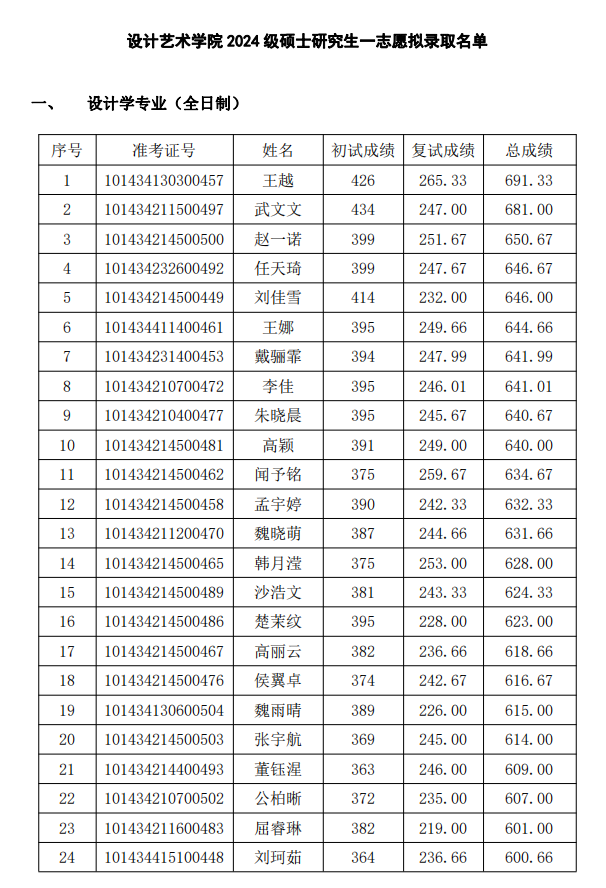 沈陽(yáng)航空航天大學(xué)設(shè)計(jì)藝術(shù)學(xué)院2024年考研復(fù)試錄取名單(一志愿)