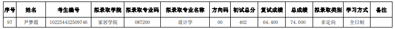 東北林業(yè)大學家居與藝術(shù)設(shè)計學院2024年考研復試錄取名單(一志愿) 發(fā)布時間:2024-04-02 東北林業(yè)大學家居與藝術(shù)設(shè)計學院2024年考研復試錄取名單(一志愿) 上一篇:東北林業(yè)大學家居與藝術(shù)設(shè)計學院2024年考研復試名單發(fā)布 下一篇:東北林業(yè)大學家居與藝術(shù)設(shè)計學院2024年考研復試錄取名單(調(diào)劑)