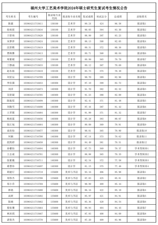 福州大學(xué)廈門工藝美術(shù)學(xué)院2024年考研復(fù)試考生成績及擬錄情況