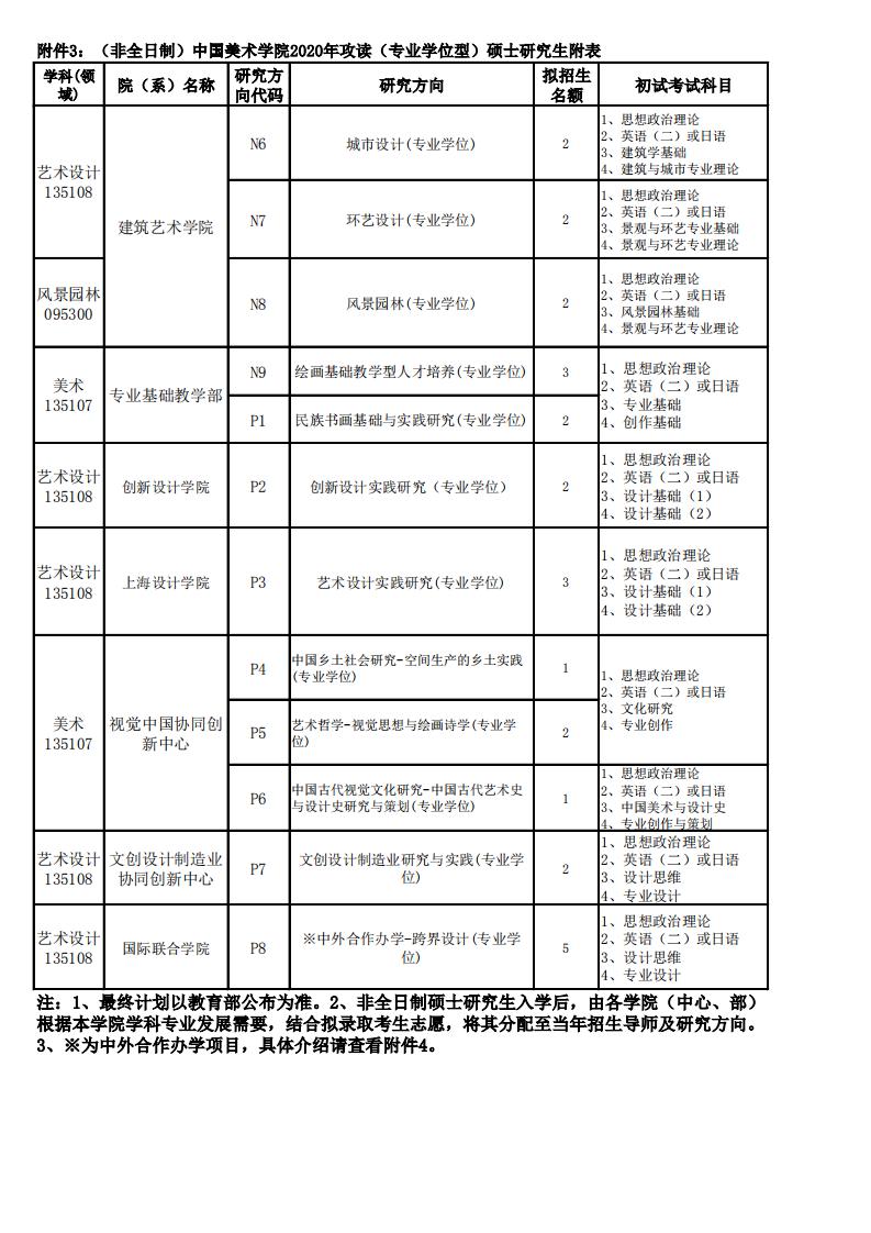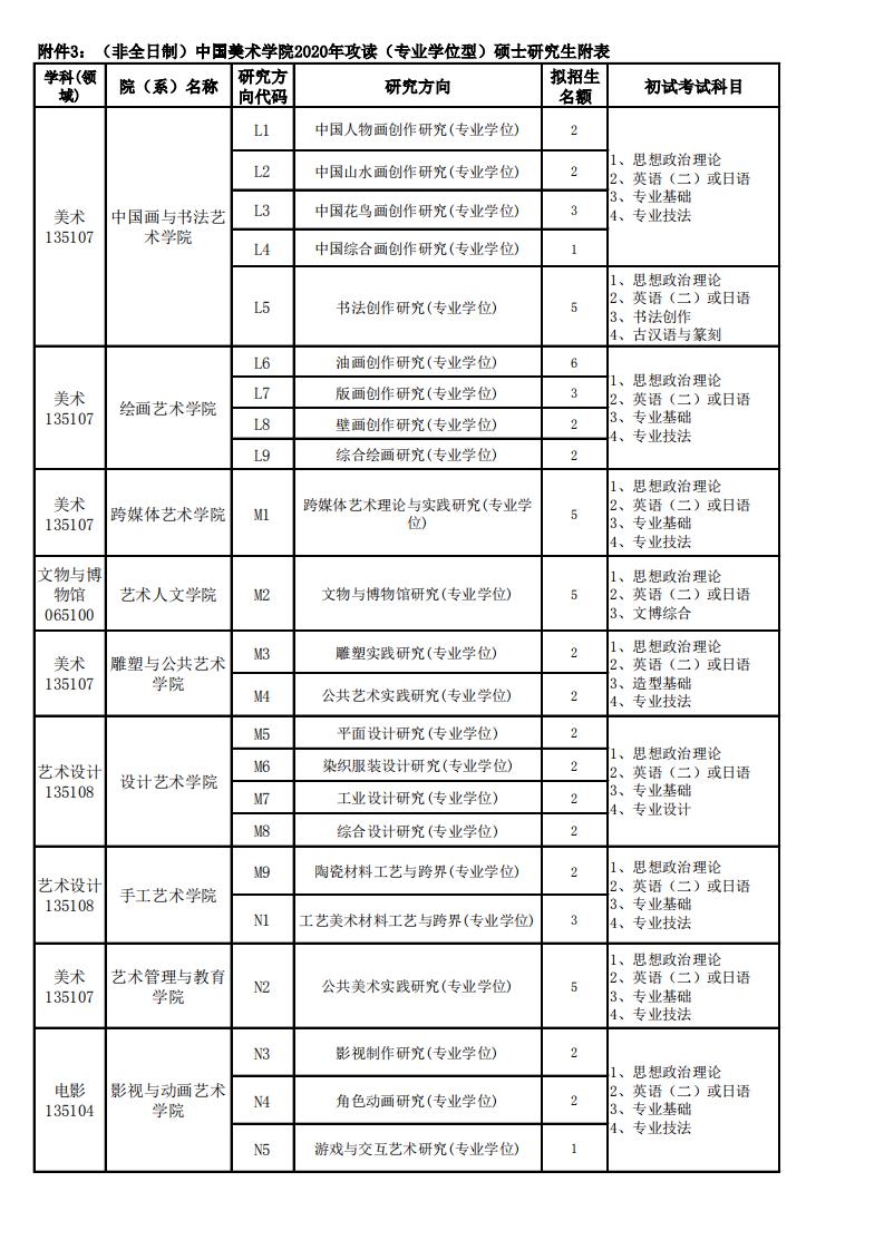 中國美術(shù)學(xué)院2020年考研招生目錄(非全日制)
