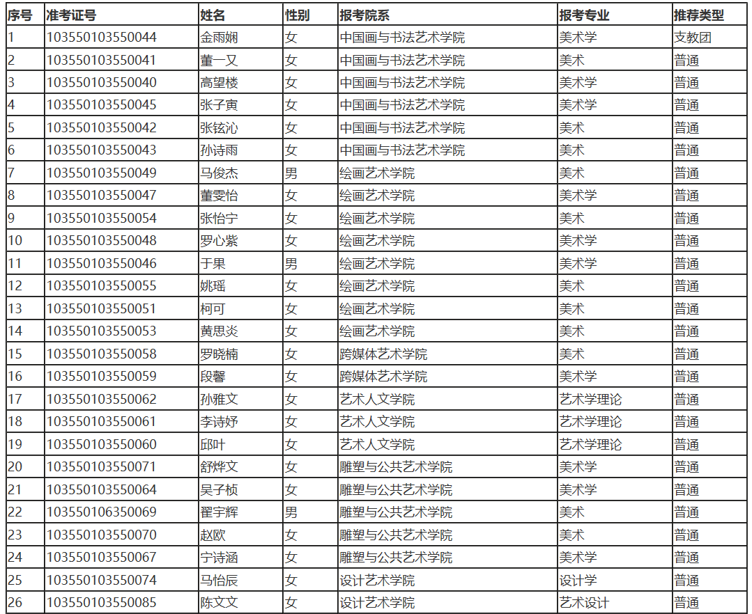 中國(guó)美術(shù)學(xué)院2020年碩士研究生推免生錄取名單公示