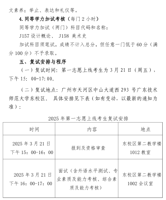 廣東技術師范大學美術學院2025年考研復試內(nèi)容發(fā)布 發(fā)布時間:2025-03-13 廣東技術師范大學美術學院2025年考研復試內(nèi)容發(fā)布 上一篇:廣東技術師范大學美術學院2025年設計考研復試名單(一志愿) 下一篇:廣東技術師范大學美術學院2025年考研擬錄取名單(一志愿)
