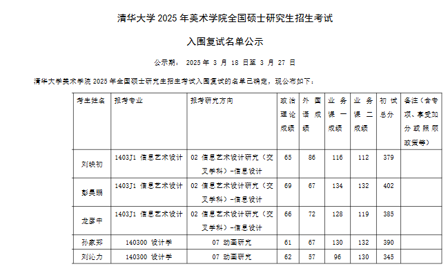清華大學(xué)美術(shù)學(xué)院2025年考研入圍復(fù)試名單公示 發(fā)布時(shí)間:2025-03-18 上一篇:清華大學(xué)美術(shù)學(xué)院2025年考研復(fù)試分?jǐn)?shù)線(學(xué)院線)及復(fù)試內(nèi)容安排 下一篇:清華大學(xué)美術(shù)學(xué)院2025年考研復(fù)試相關(guān)安排通知